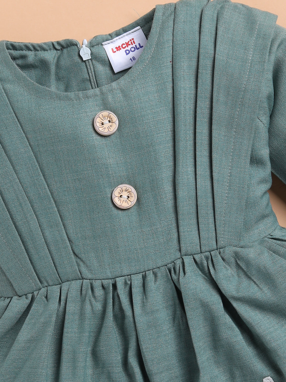 Lackii Doll Embroidered Cotton Dress for Girls | Soft & Elegant Green & Pink Outfit